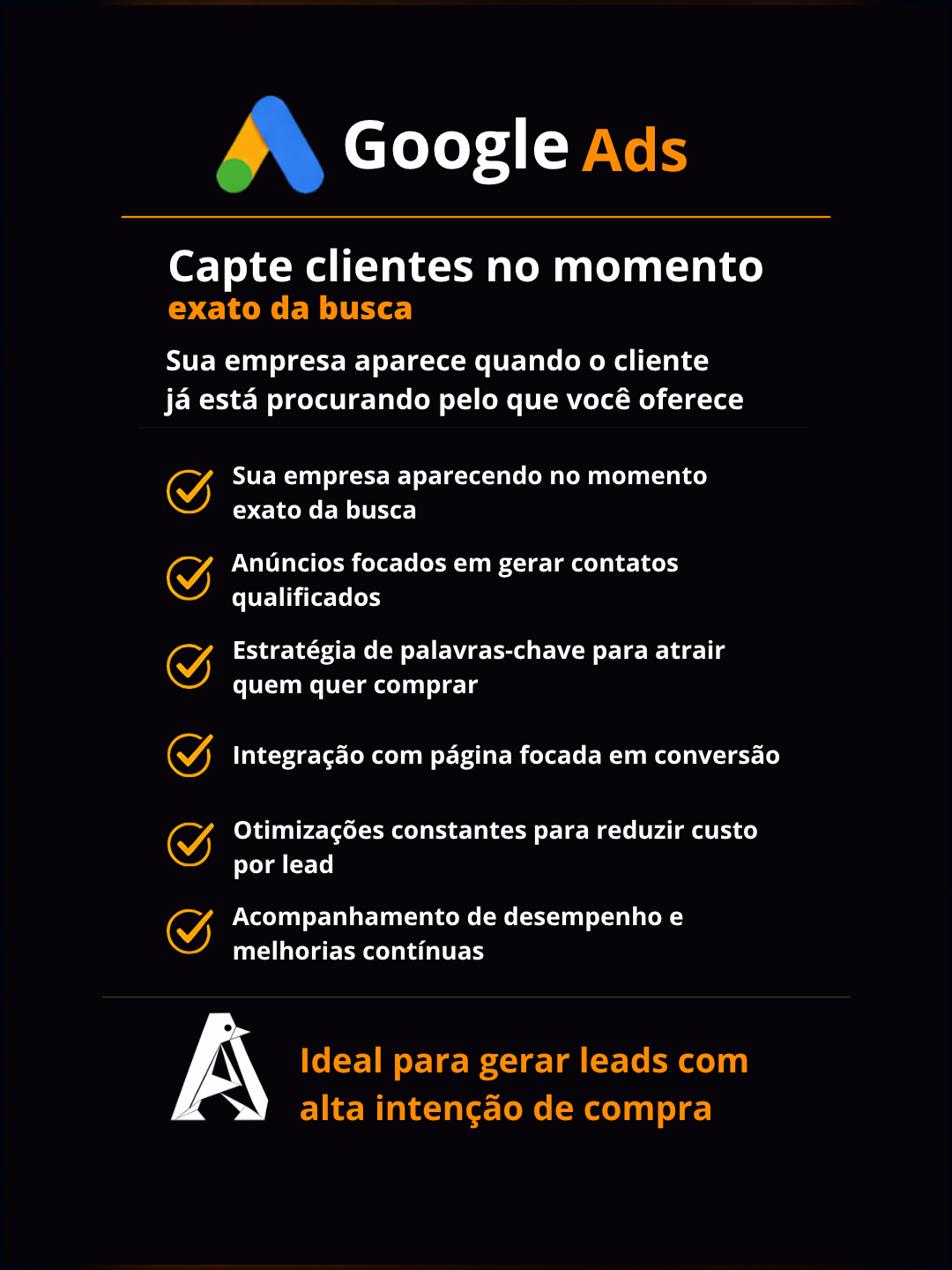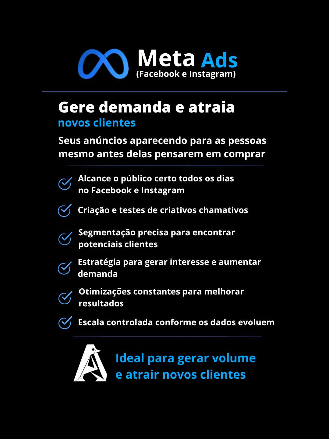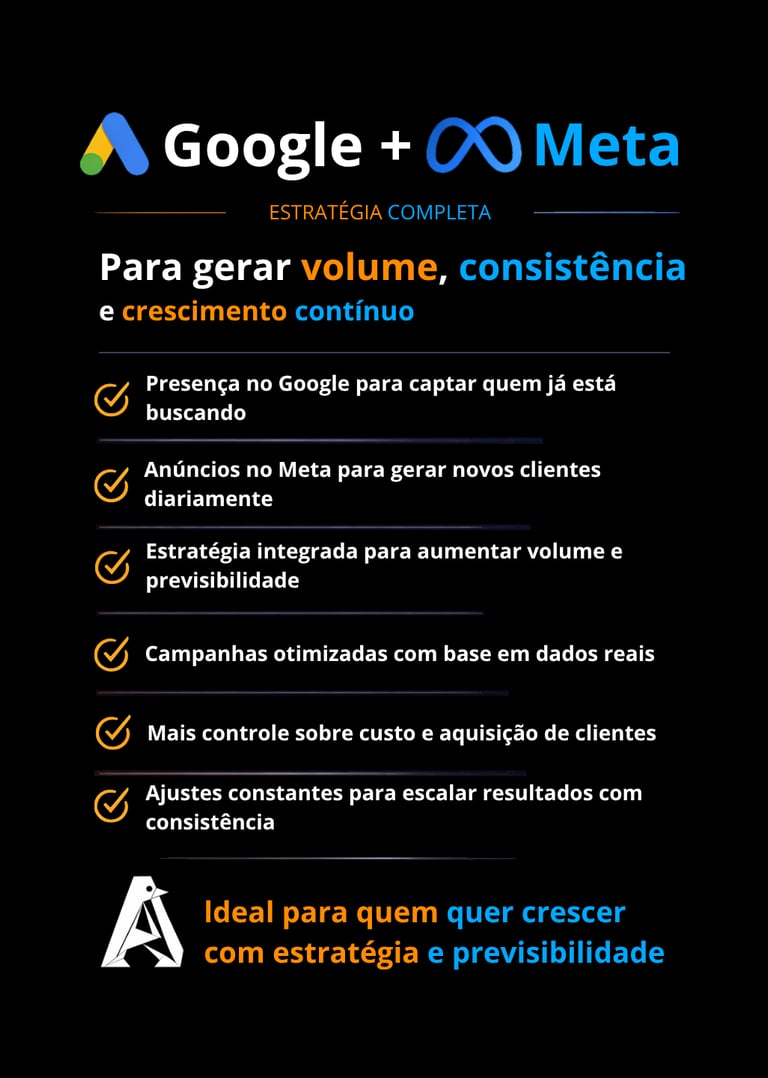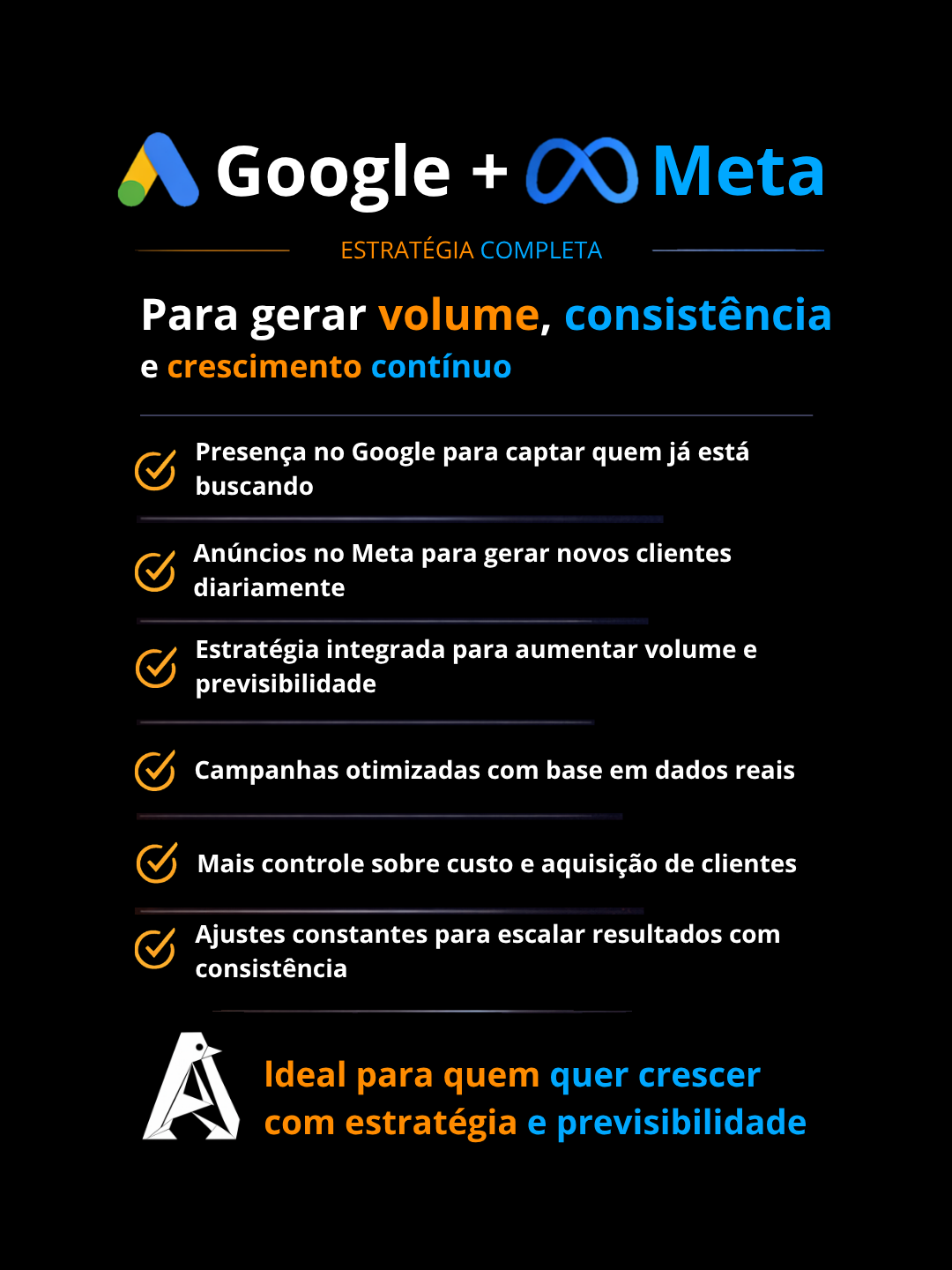Criamos campanhas estruturadas em plataformas como Google Ads e Meta Ads, além de desenvolvermos sites otimizados para conversão e configurar todas as contas.